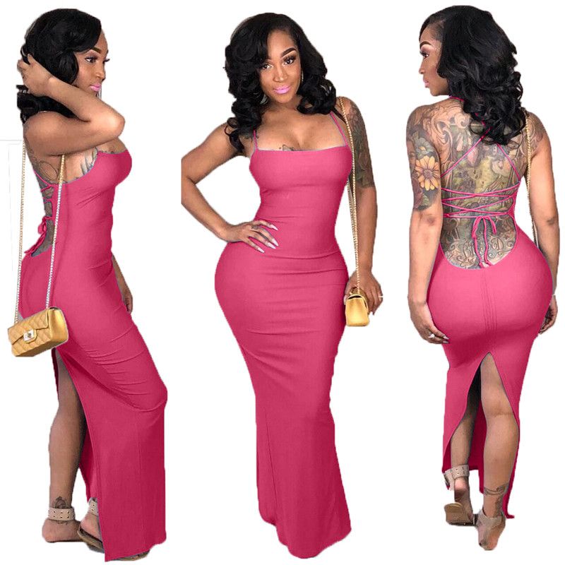 Women Casual Maxi Dress Stylish Spaghetti Strap Column Sleeveless
