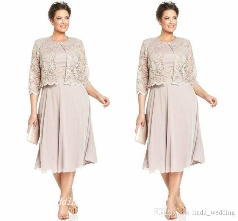 Chiffon Plus Size Mother Of The Bride Dresses With Jacket Knee Length