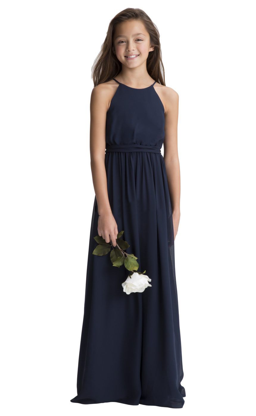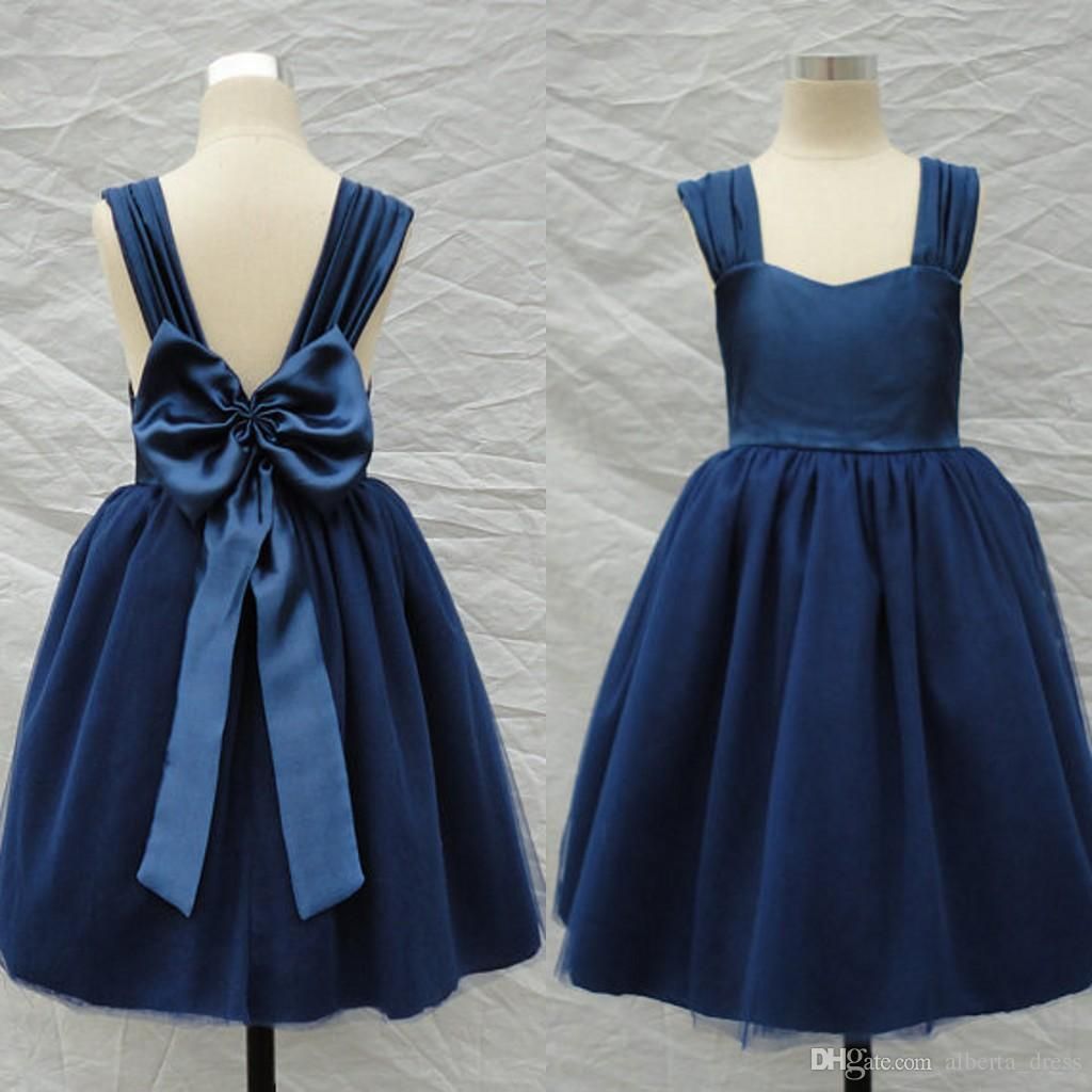Navy Blue Sleeveless Tulle Dress With Mesh Rolled Flower Girl Dress