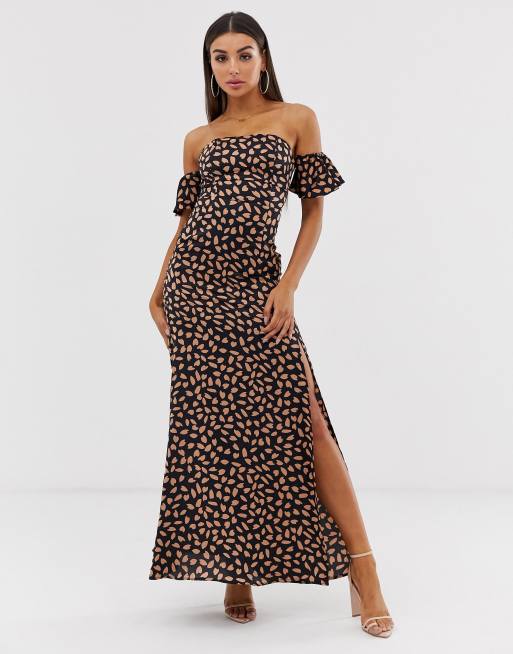 Off The Shoulder Maxi Dress In White Multi Venus