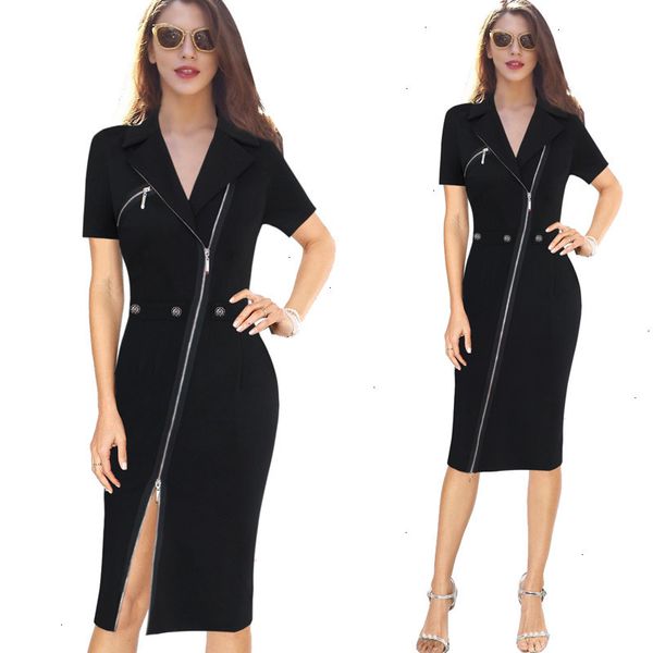 Elegant Business Casual Dress Women V Neck Office Dress 3 4 Sleeve
