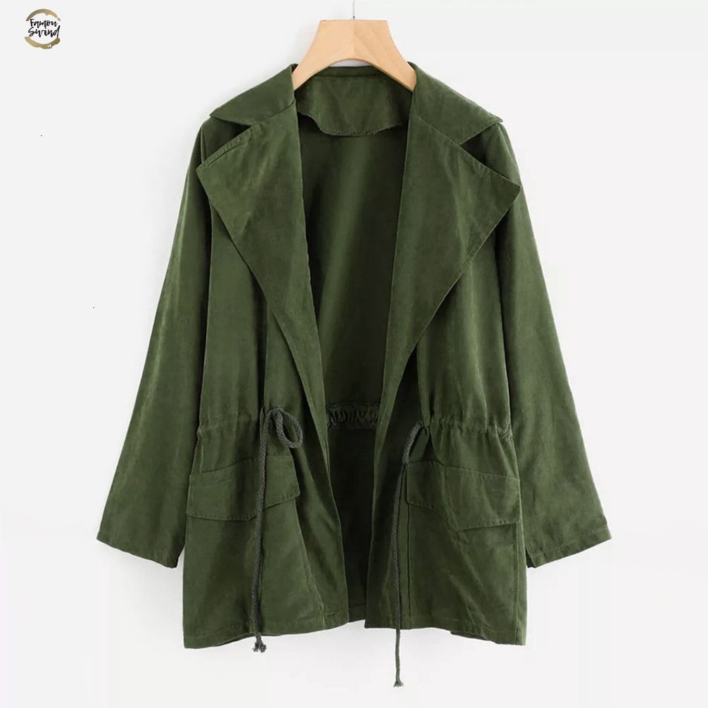 Green Army Women Long Sleeve Jacket Windbreaker Parka Pockets