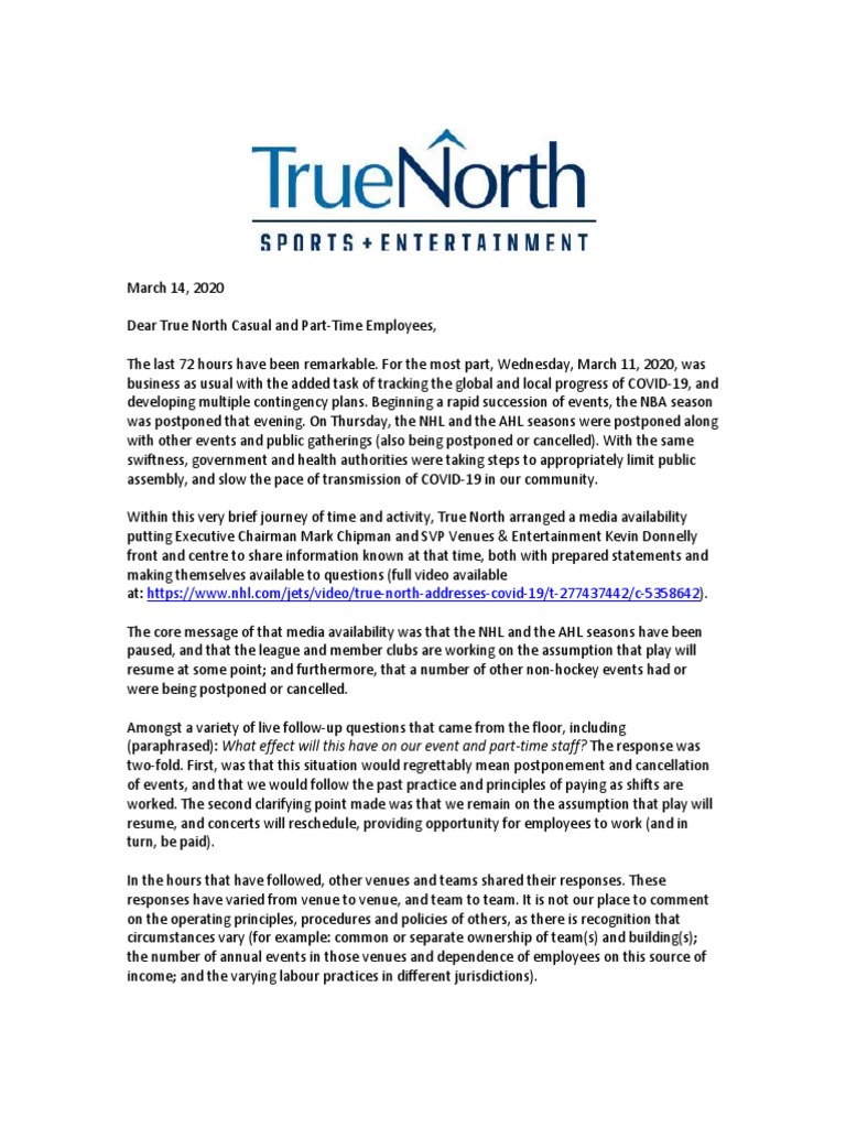 True North Casual Part Time Employees To Be Paid Despite Event