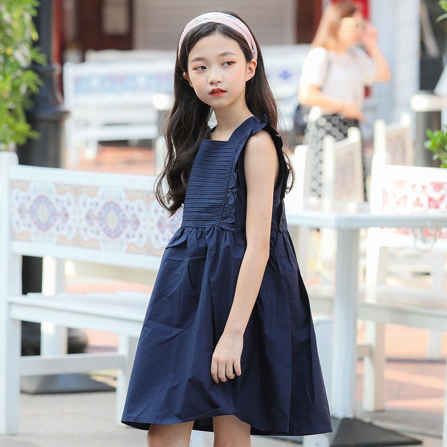 Newborn Kid Baby Girls Party Dress Cotton Denim Dress With Belt