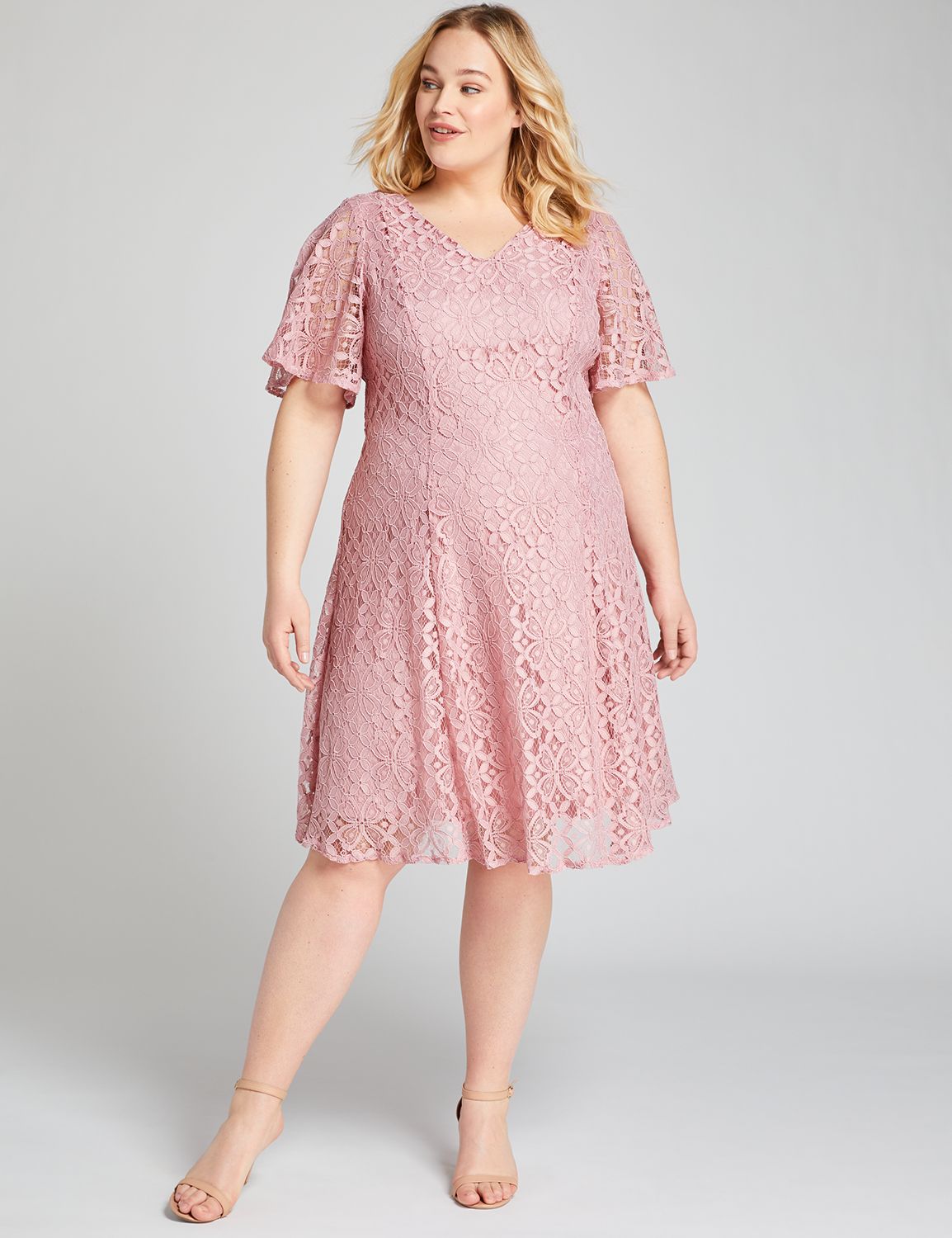 Plus Size Pink Lace And Tulle Short Formal Occasion Dress With
