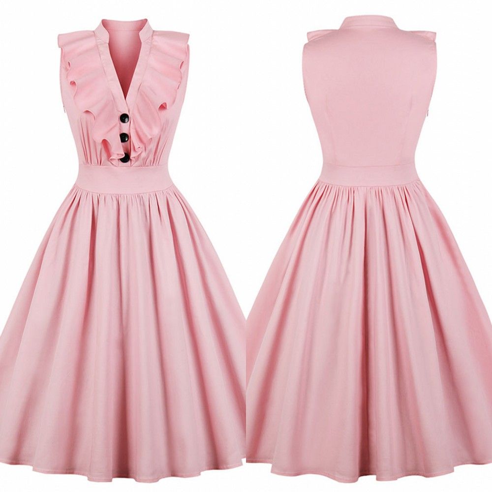 Light Pink V Neck Casual Plus Size Dress 028086 Casual Dresses