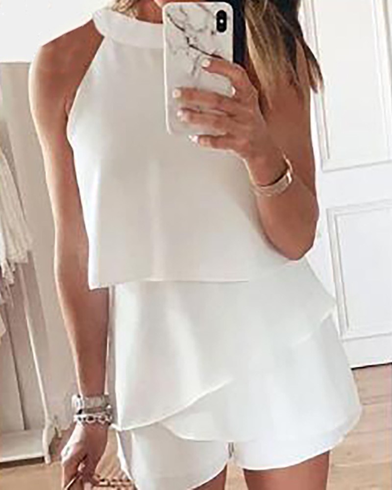 Solid Short Sleeve Casual Romper Jumpsuit Jumpsuits Bravowill