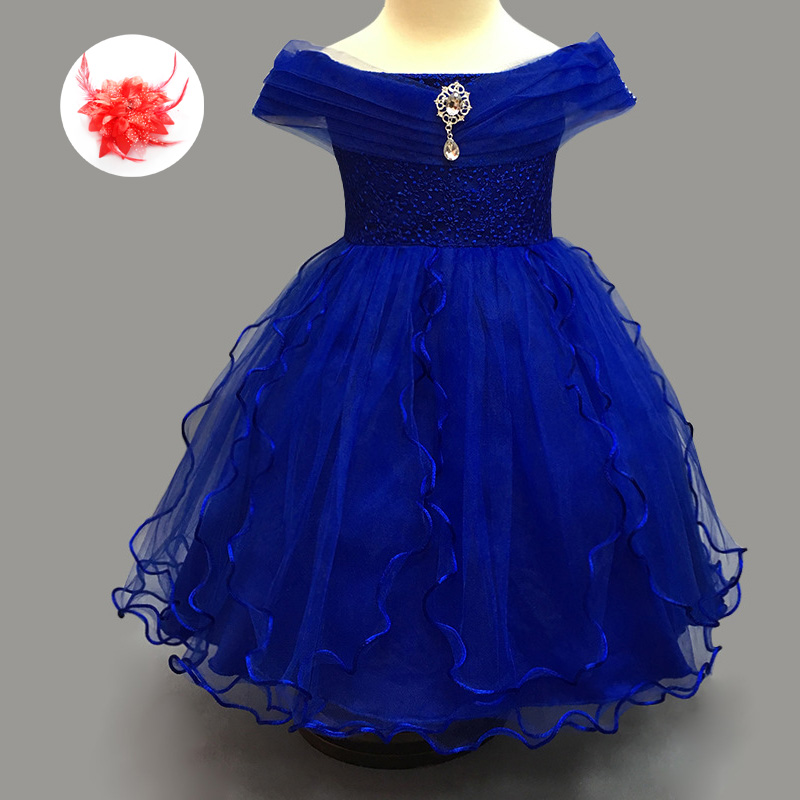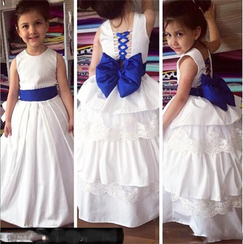 White Royal Blue Flower Girl Butterfy Tulle Dress Tie Sash Pageant