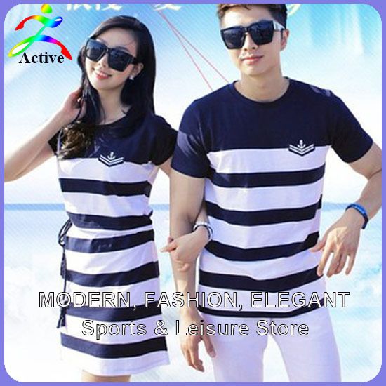 Stripe Fashion Casual Couple Clothes Summer Couples Skirt Cc01089