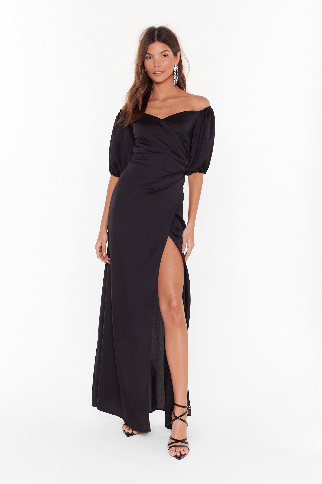 Break It Off The Shoulder Satin Maxi Dress Nasty Gal