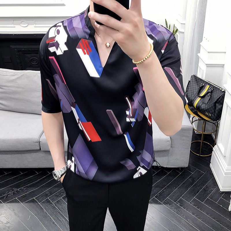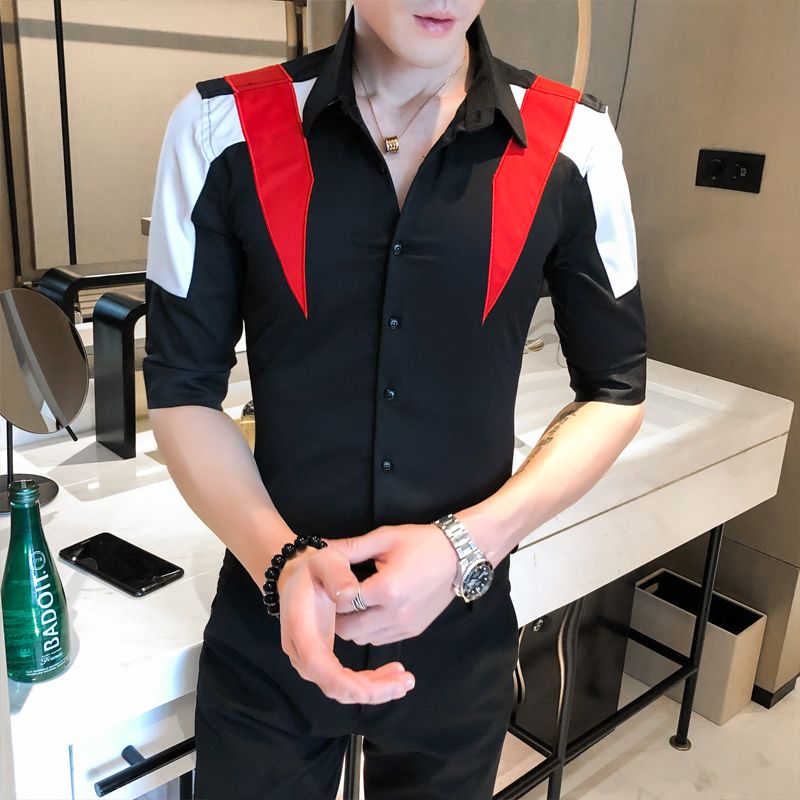 Casual Slim Fit Mens Dress Shirts Summer Half Sleeve Streetwear