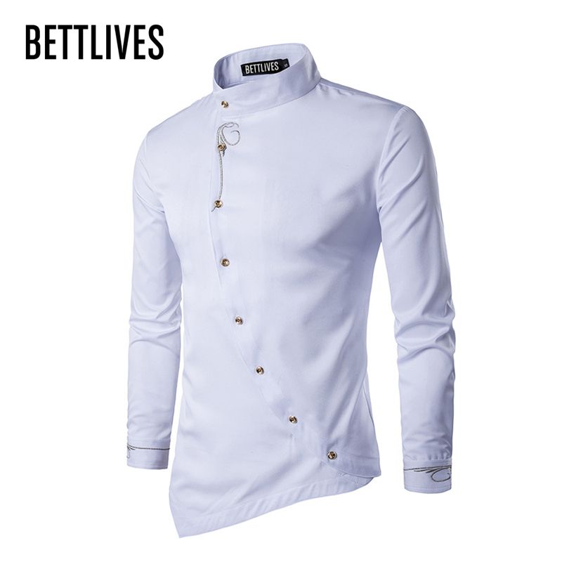 Men T Shirt Men S Fashion Fold Tilt High Collar Long Sleeve Button