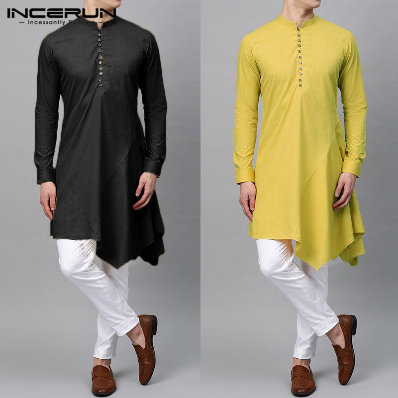 New 2020 Men Shirts Long Sleeve Dress Islamic Chemise Elegant