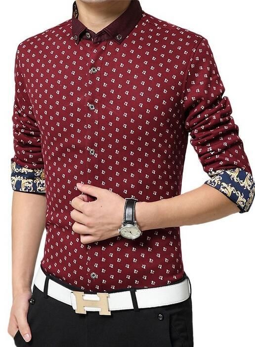 Hot Sale New Fashion Casual Men Shirt Long Sleeve Jacquard Weave