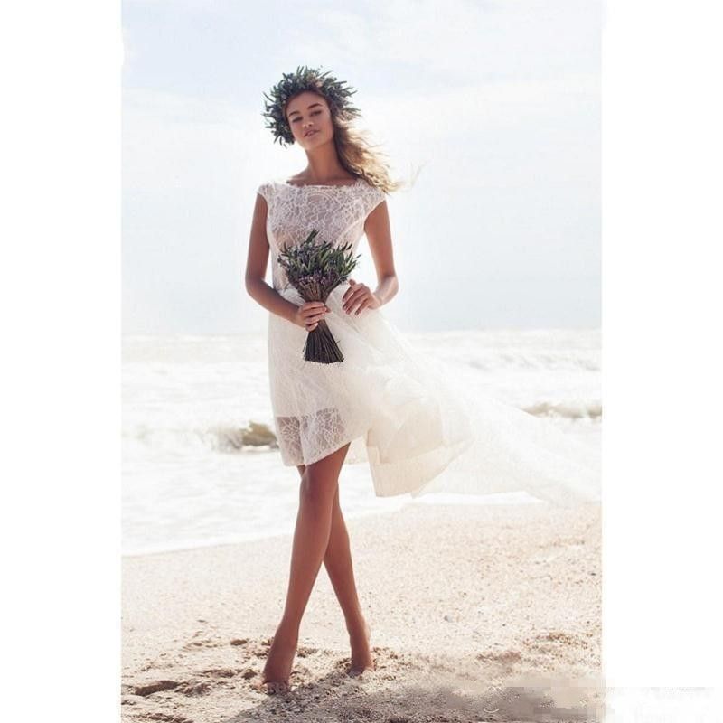 Boho Wedding Dress Bohemian Lace Edge Off Shoulder Short Sleeve