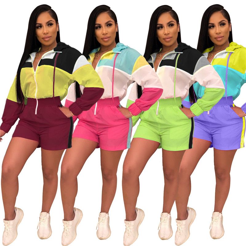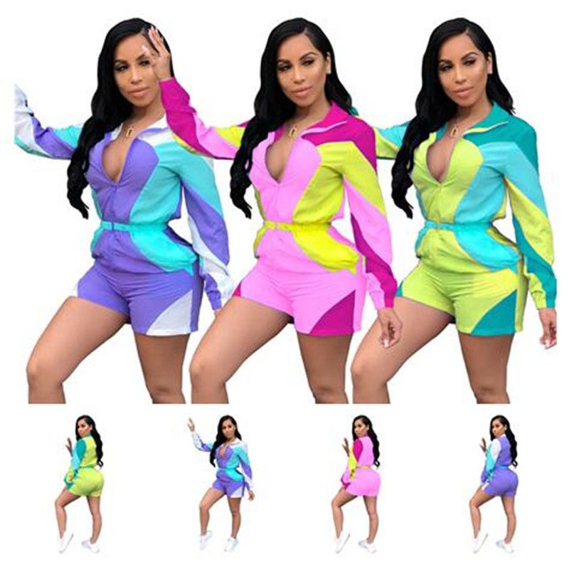 Adogirl Color Patchwork Women Hooded Jumpsuit Sexy Zipper V Neck