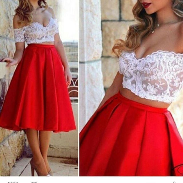 White Lace Two Piece High Low Homecomig Dress Cap Sleeve Lace