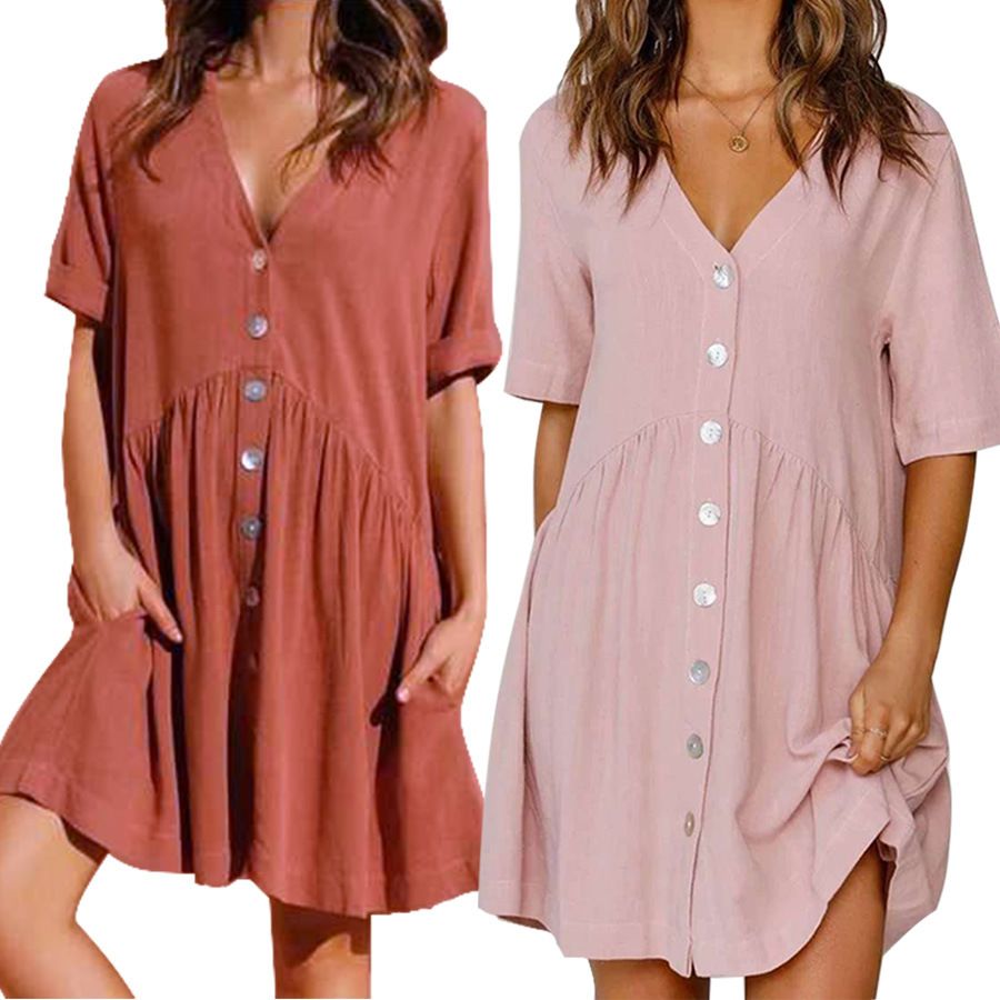 Loose Simple Linen Dresses Women Casual Outfit Q1250 Fantasylinen