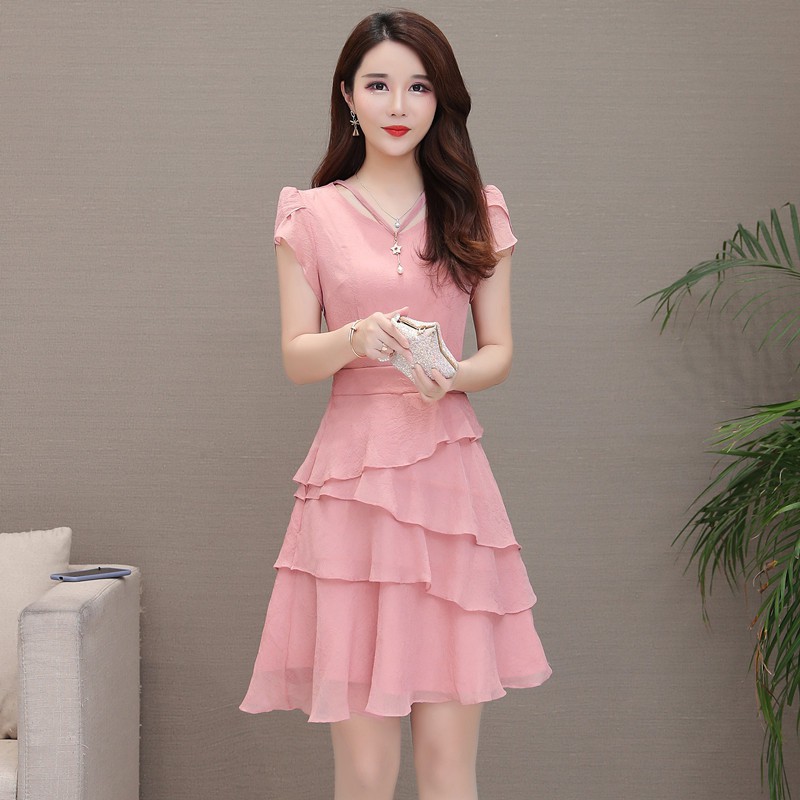 2019 Fashion Korean Women Pink Dress Summer Casual Short Sleeve