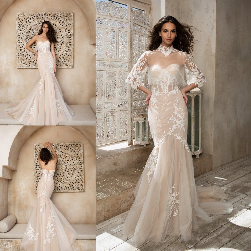 Simple Two Piece Jewel Neckline Long Sleeve Wedding Dress Dress