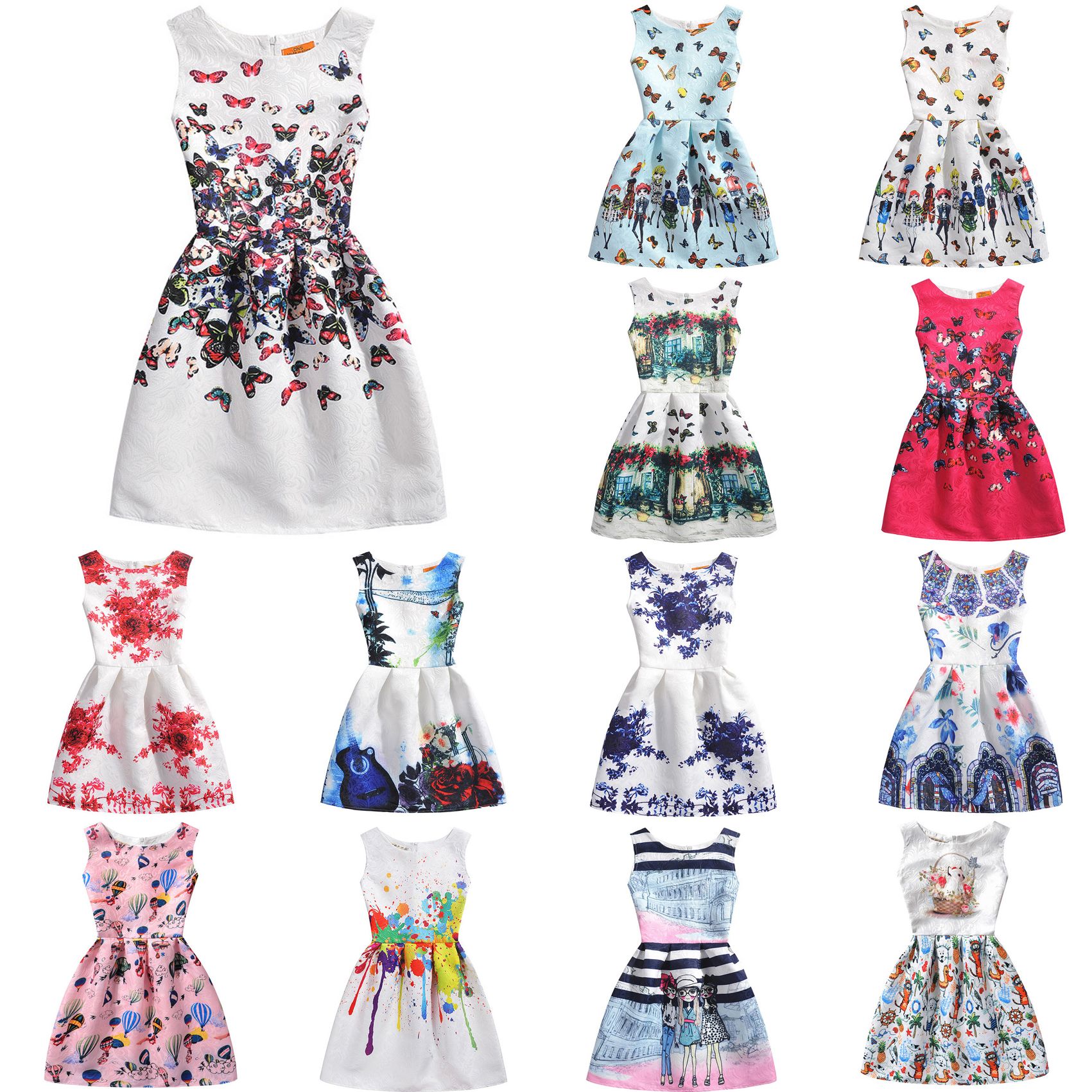 2019 Summer Teenage Girls Dress White Black Kids Dresses Casual