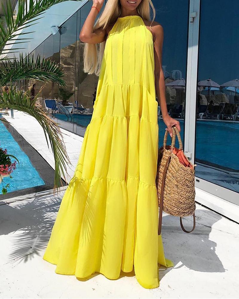 Singrain Women Print Chiffon Long Dress Korean Sleeveless Solid