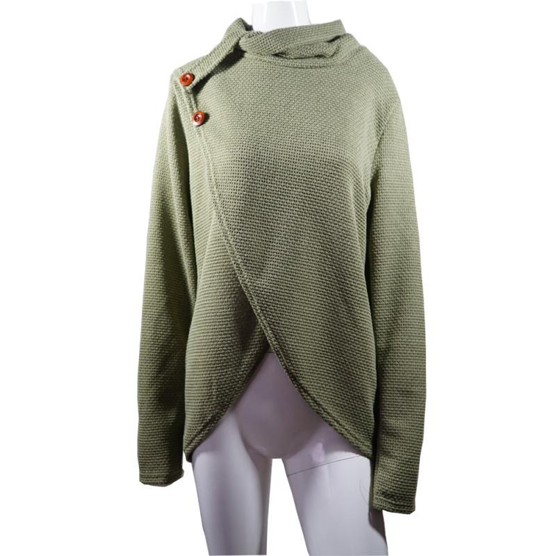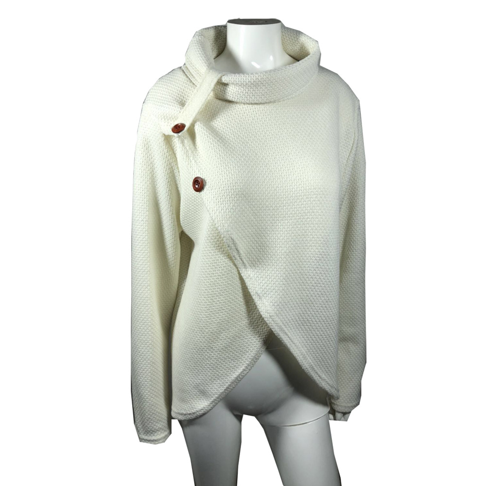 Casual Turtleneck Asymmetrical Buttoned Plain Long Sleeve Sweater