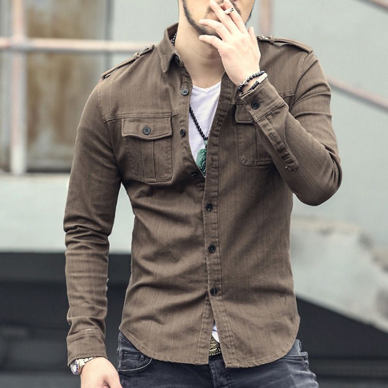 Men S Autumn Denim Uniform Shirt Male Military Long Sleeved