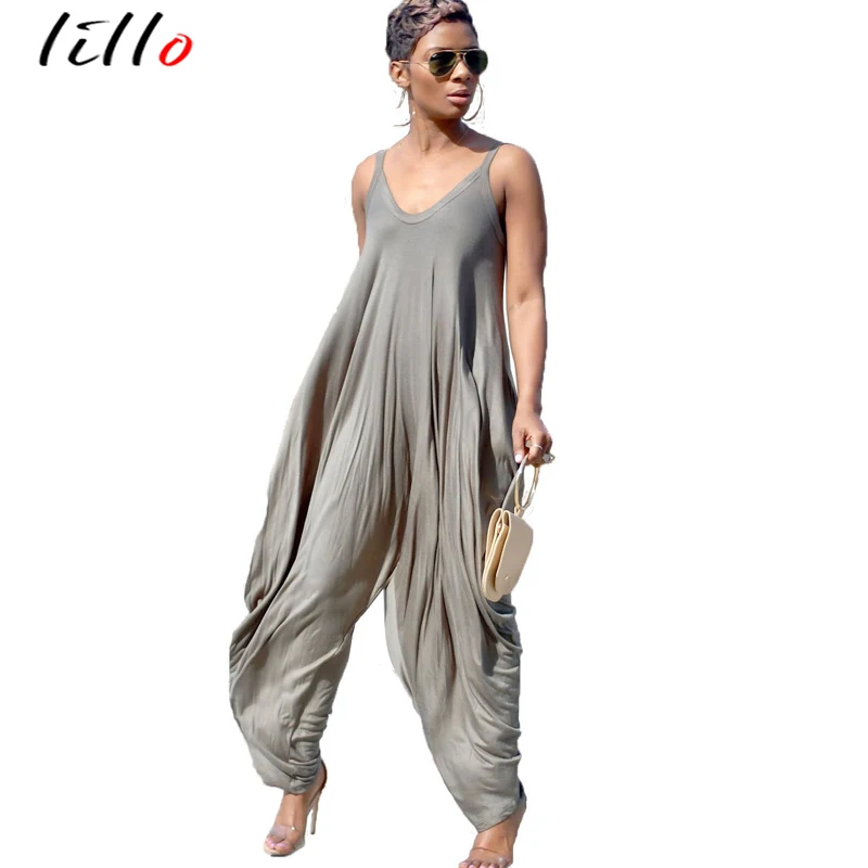 Women Summer Sleeveless Lapel Loose Casual Vest Jumpsuit One Piece