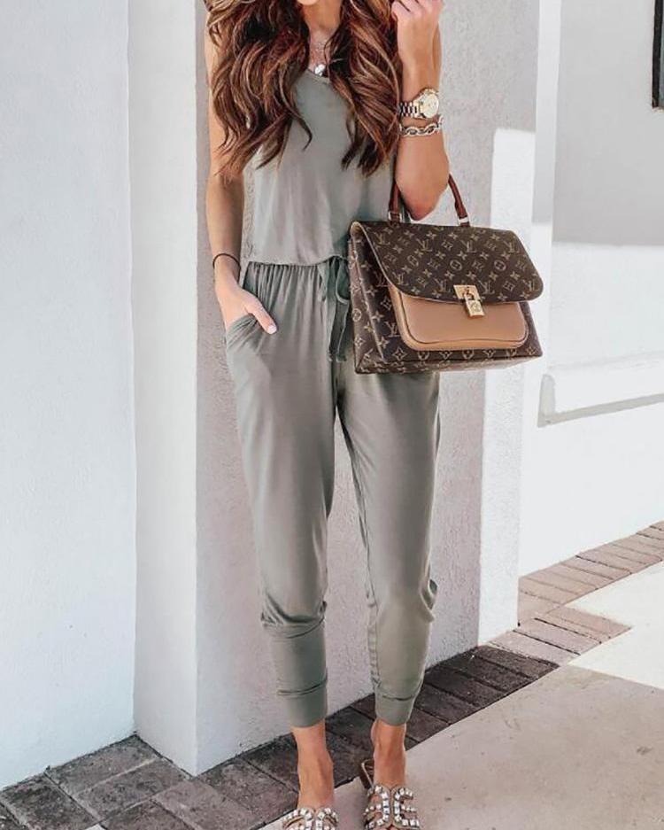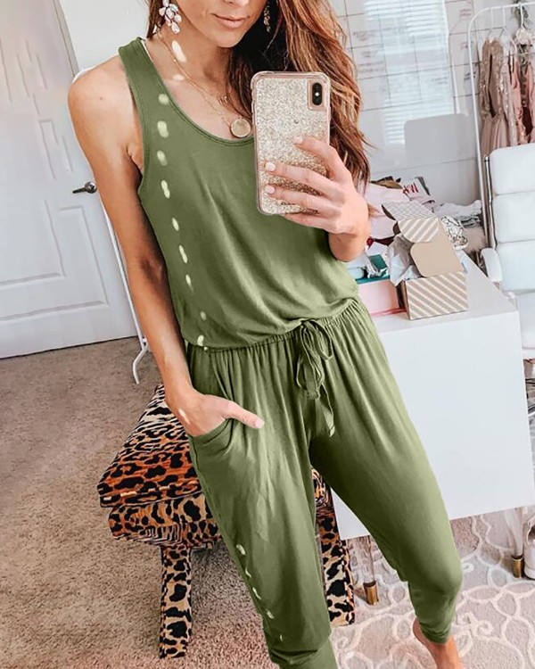 Round Neck Casual Vest Jumpsuit
