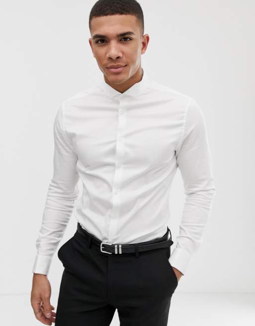Asos Design Stretch Skinny Wedding Shirt In White With Black