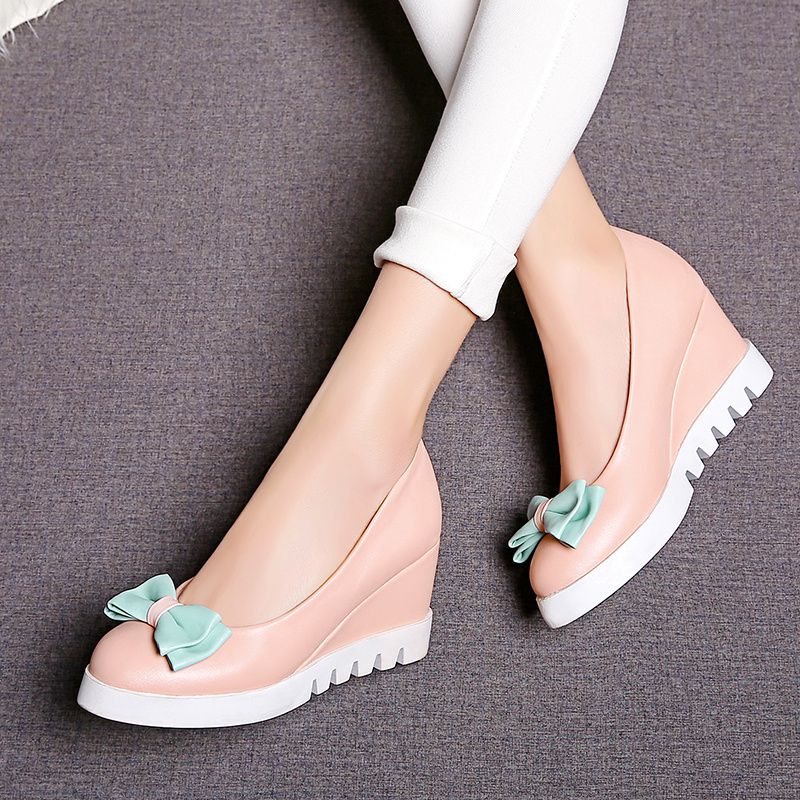 Women Wedges Shoes High Heels Casual Platform Fashion Sweet Bow Summer