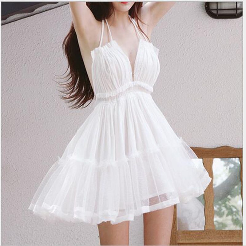 Ztvitality New Sexy White Solid Lace Backless V Neck Mini Dress