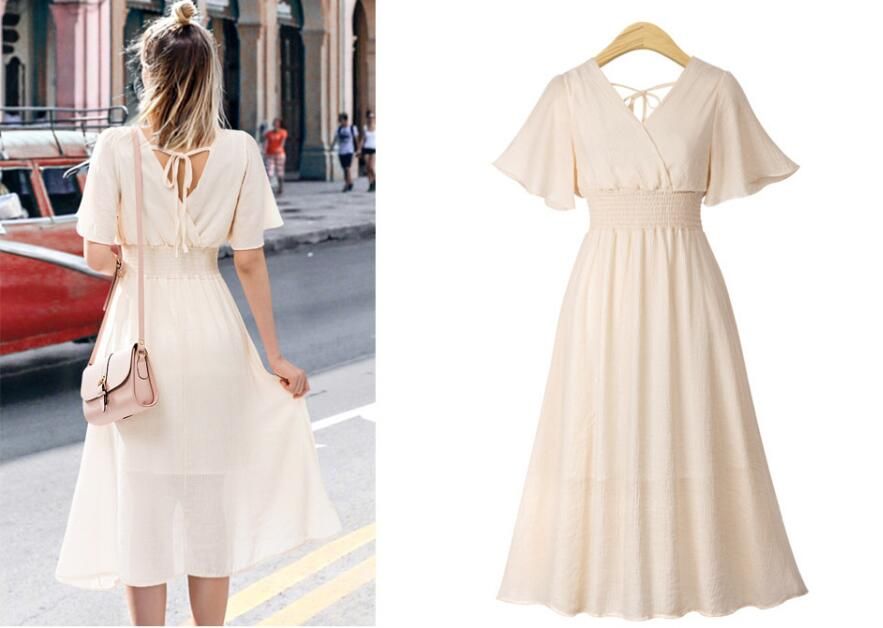 Casual Round Neck White Bell Sleeve Summer Lace Dress Buy