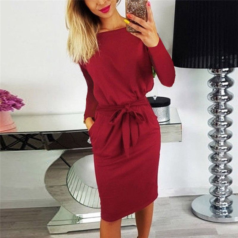 Women 2018 Casual Vintage Autumn Winter Dress Plus Size Elegant