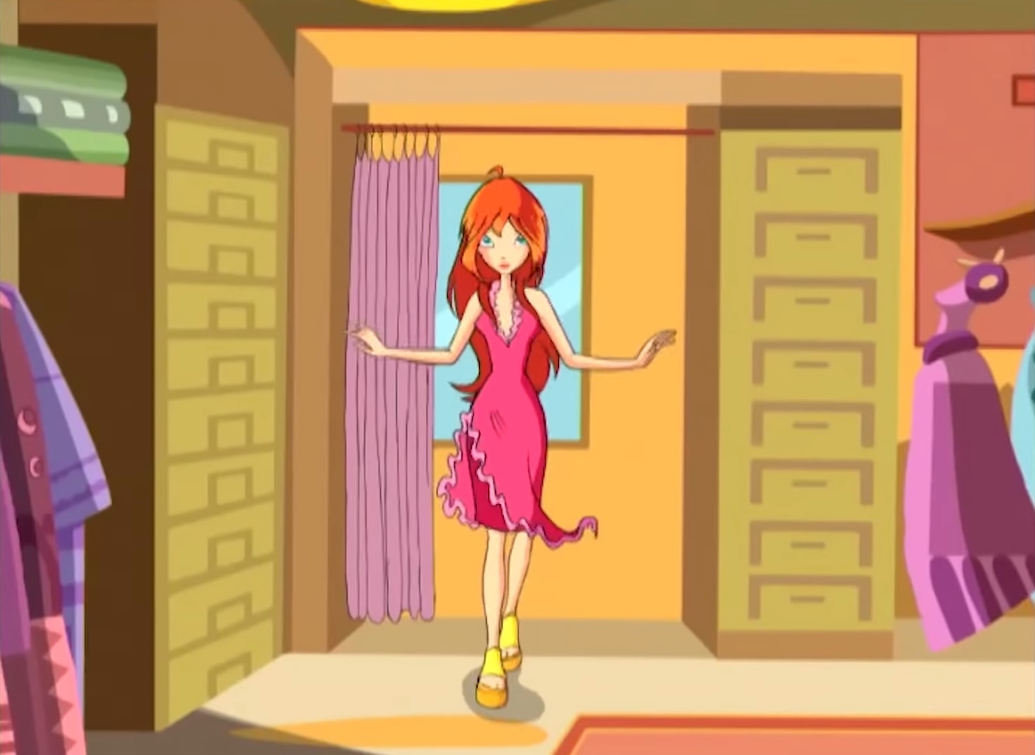Season 1 winx club season 2 winx club season 3 winx club season 4 winx club season 5 winx club season 6 winx club season 7 winx club season 8 winx club winx club. Image description civilian floras civilian outfit is a bright yellowish green off the shoulder crop tube top with puffy sleeves that bares her midriff a pink faux wrap short skirt decorated with strawberries of a darker shade with a thin yellow belt that hangs midway down the skirt two sets of yellow bangle bracelets on each arm and pink platform sandals with fuschia colored flowers by her. Season 1 world of. It might be obvious that she might b better than the rest of the other winx club girls and with this there could be trouble between them.
