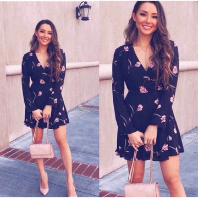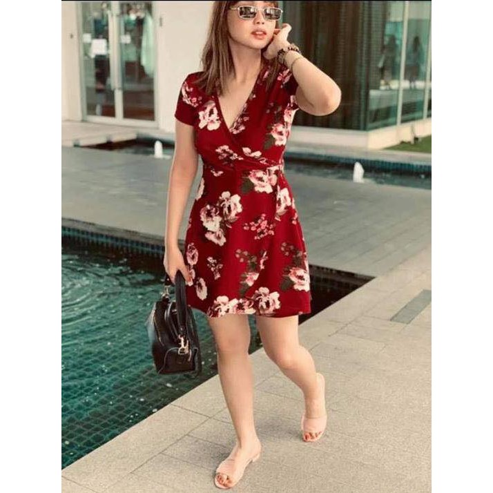 Shop Pomelo Mini Floral Wrap Dress Black Online On Zalora