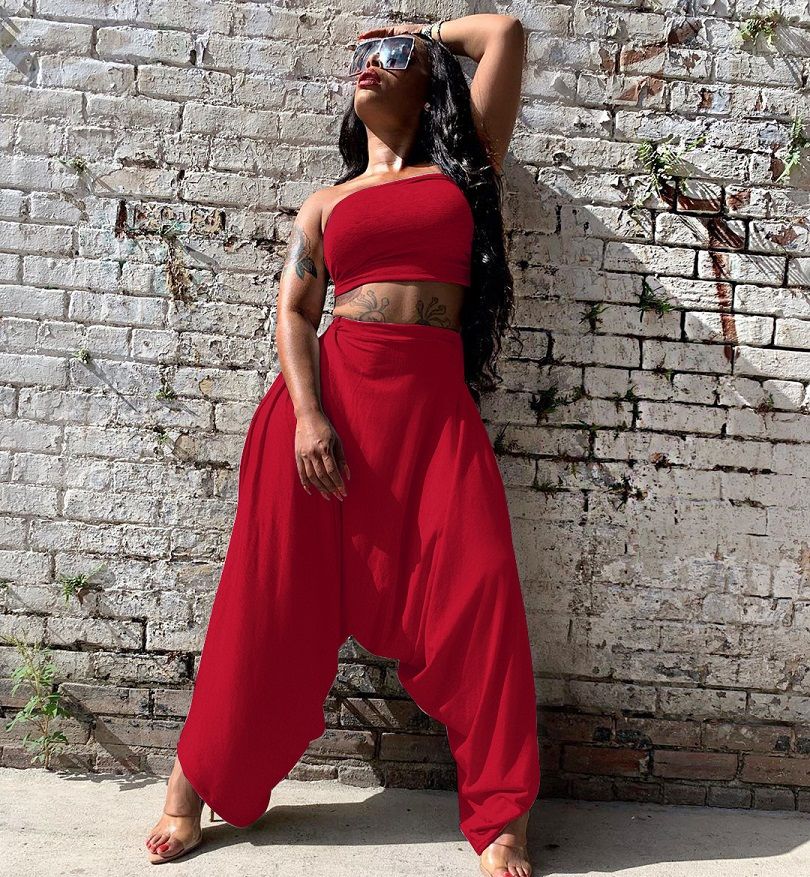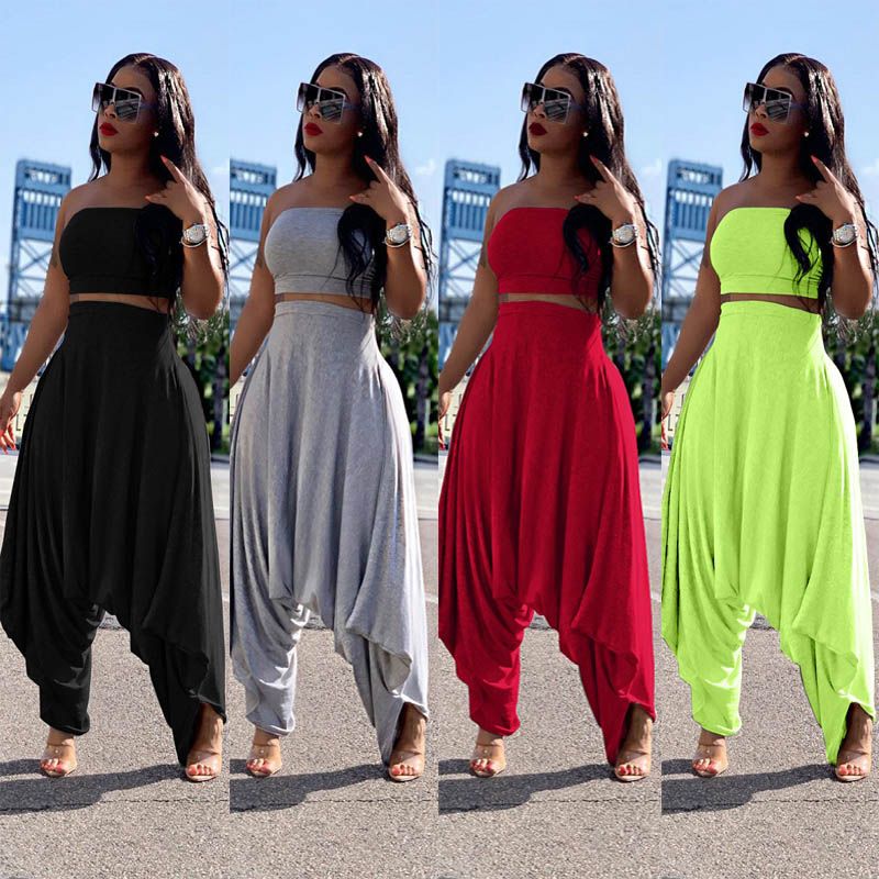 Sexy Women Leopard Print Strapless Chest Wrap Long Harem Pants