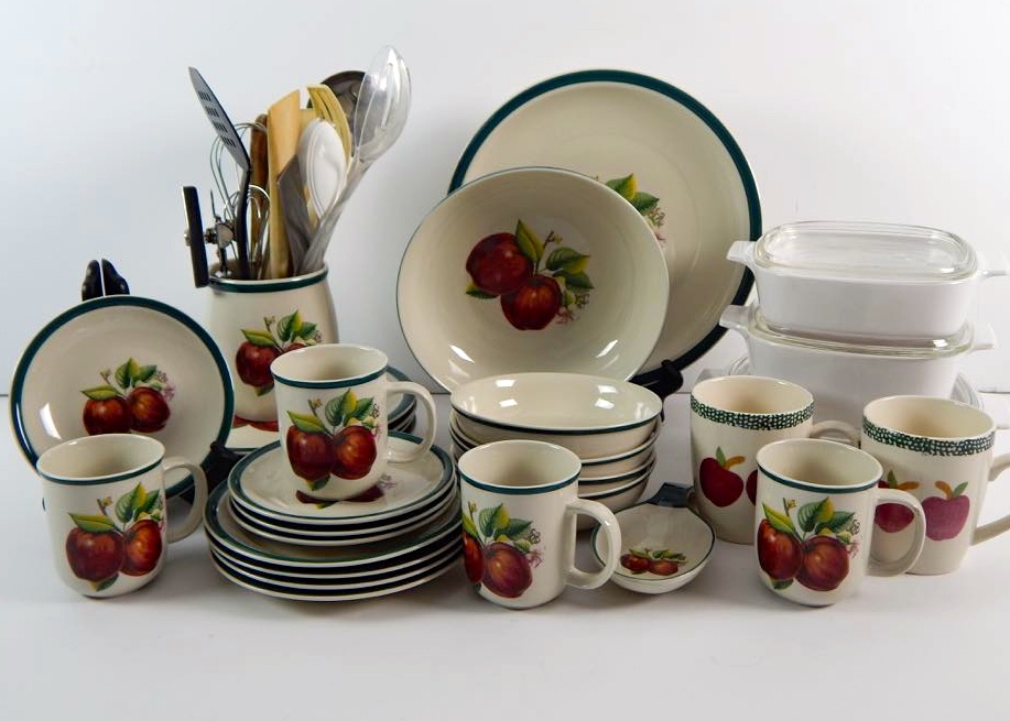 Apple Dishes 4 Plates 4 Canisters 1 Teapot