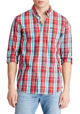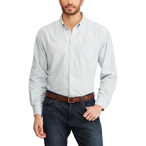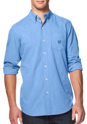 Chaps Men S Easy Care Blue White Long Sleeve Plaid Casual Shirt
