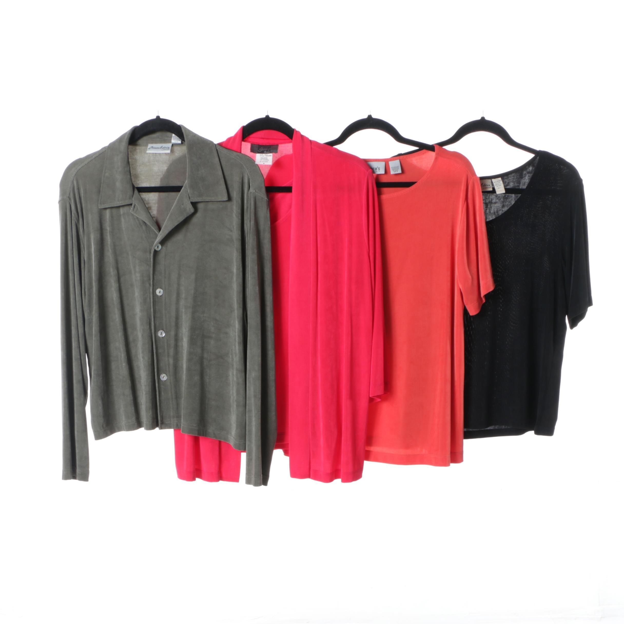 Chicos Size M Orange Poly Blend Solid Short Sleeve Top The Pinwheel