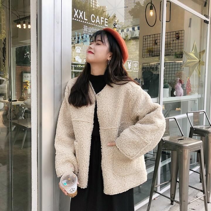 2020 New Autumn Winter Europe Womens Faux Fur Coat V Neck Outwear