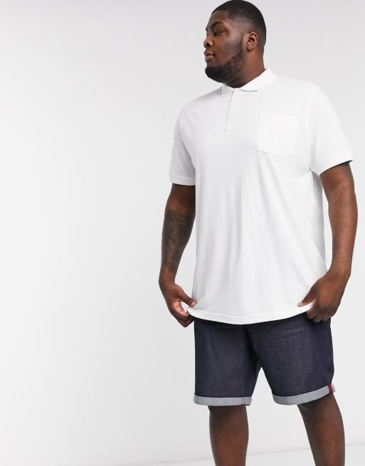 Duke Plus Pique Polo Shirt With Pocket In White Asos