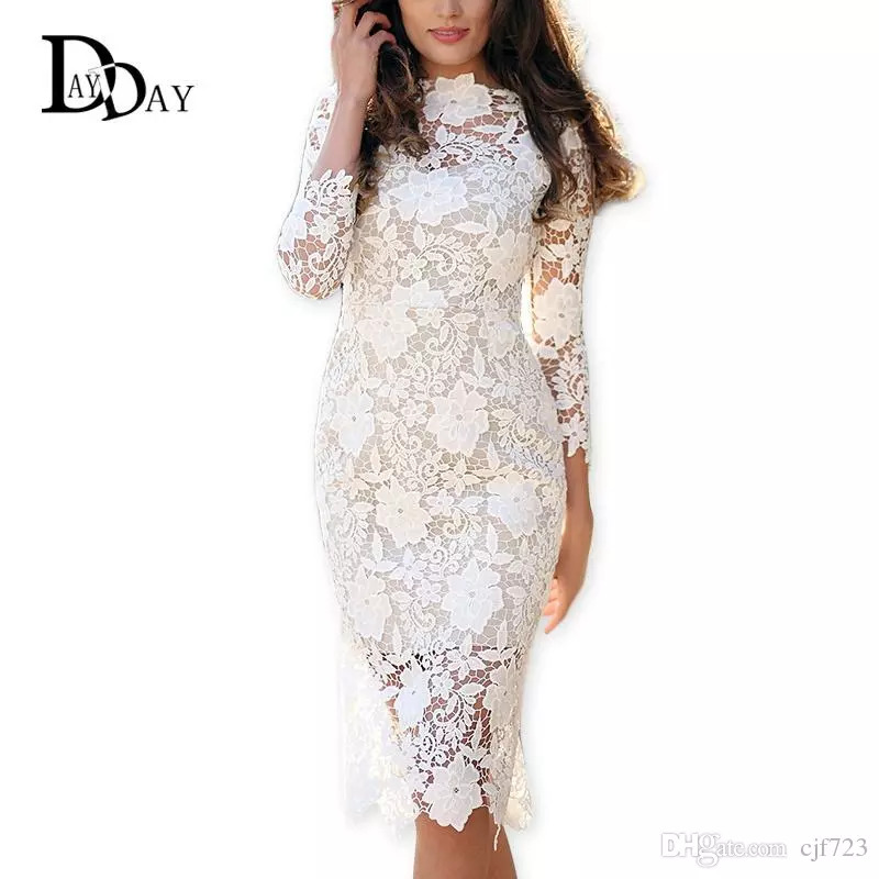 Por Mayor Vestido De Encaje Blanco De Estilos Casuales Comprar