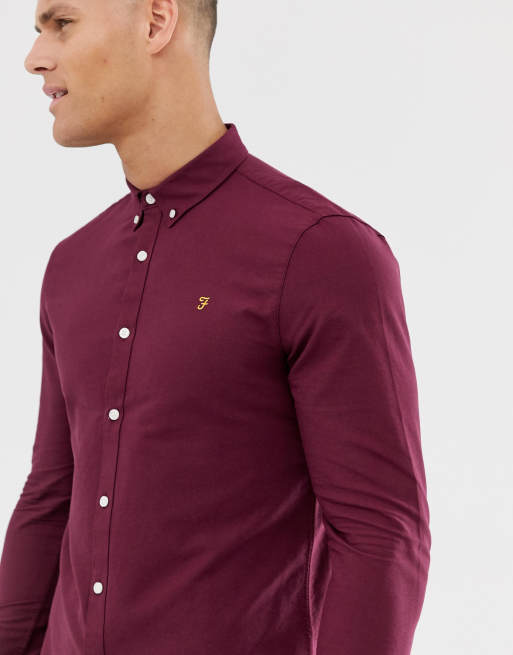 Farah Brewer Slim Fit Oxford Shirt In Burgundy Asos