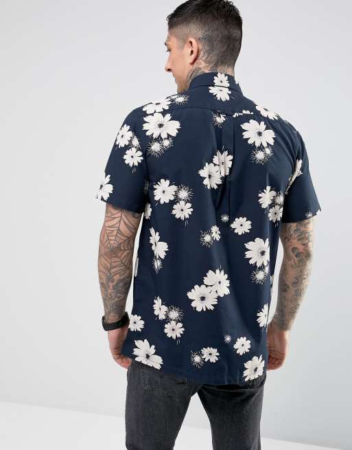 Farah Cotton Tilbury Casual Fit Floral Short Sleeve Shirt Navy In