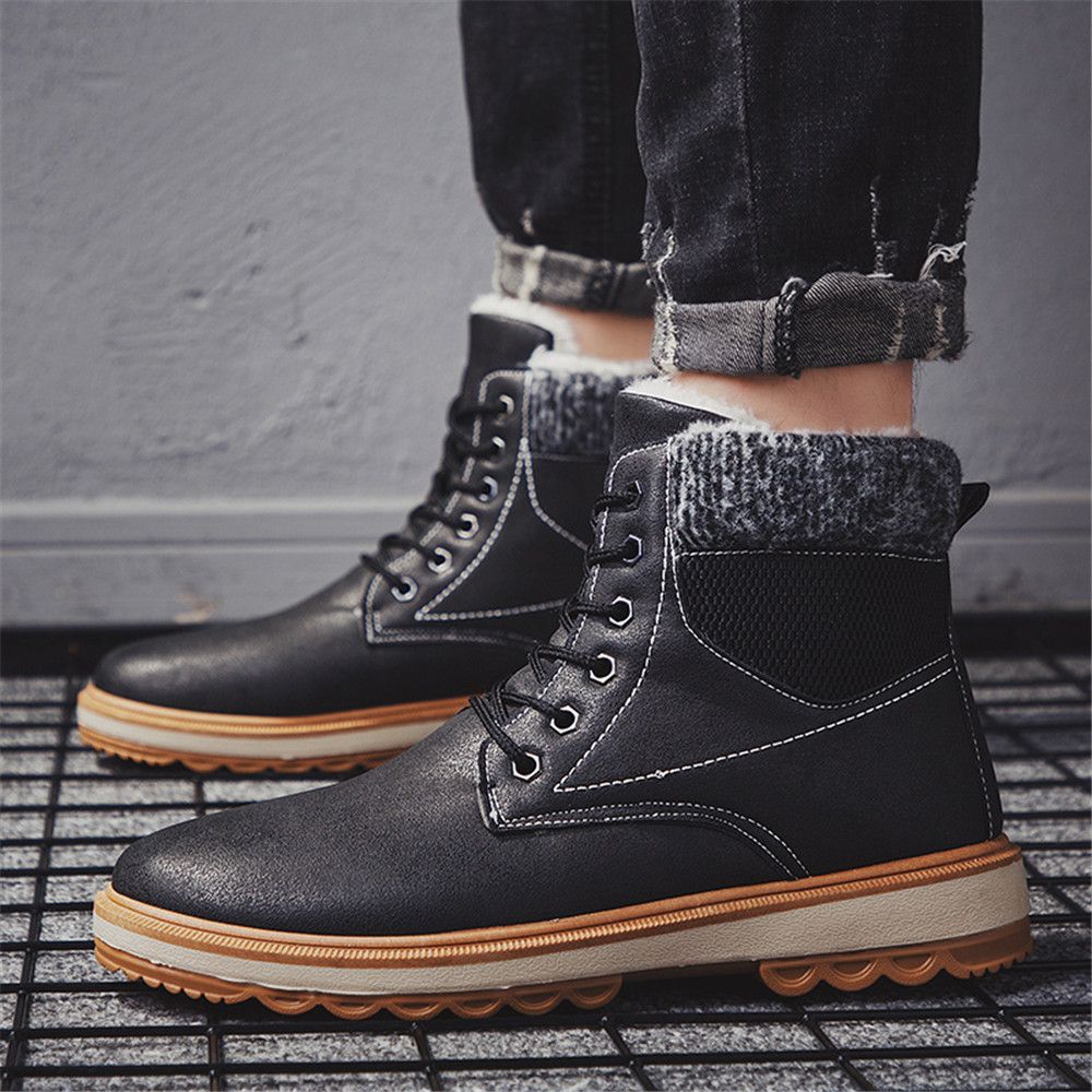 Faux Fur Boots Men Slip On Casual Shoes High Sole Platform Chelsea