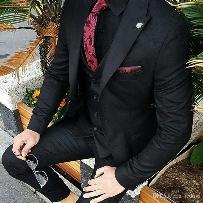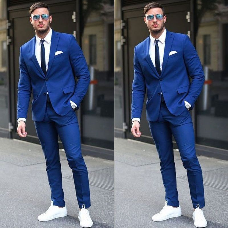 Casual Blue Groom Tuxedos Men Suits For Wedding Peaked Design