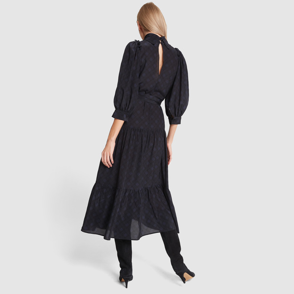 Eliza J High Neck Tiered Ruffle Floral Print Long Sleeve Chiffon