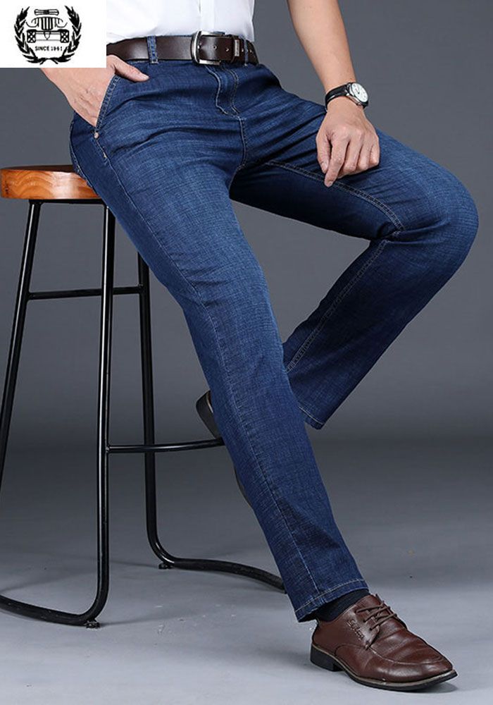 Ceewhy Men Jeans Business Casual Thin Summer Straight Slim Fit